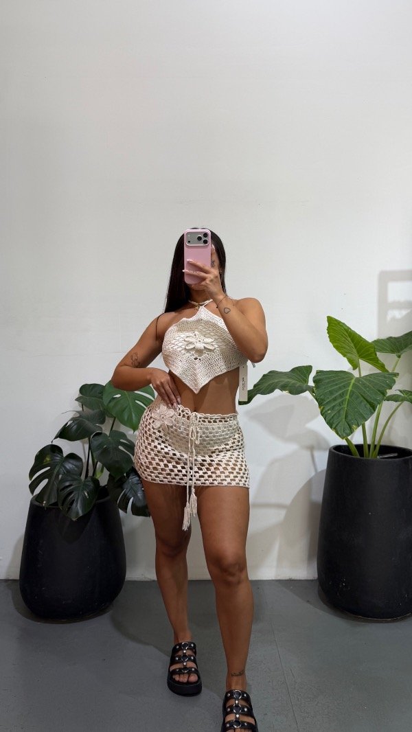 Set tejido. Top + Mini. Importado, talle inicio. Pollera abarca hasta 42 de pantalón.