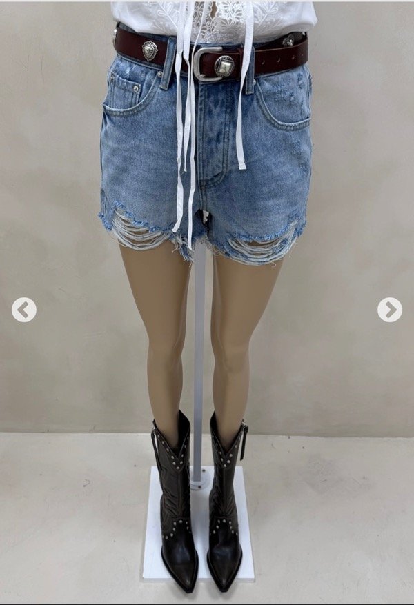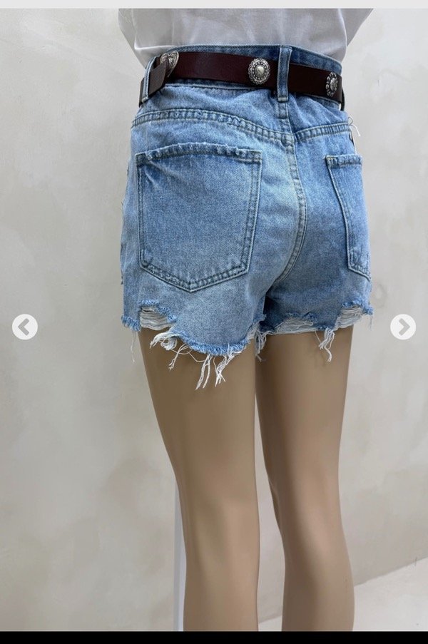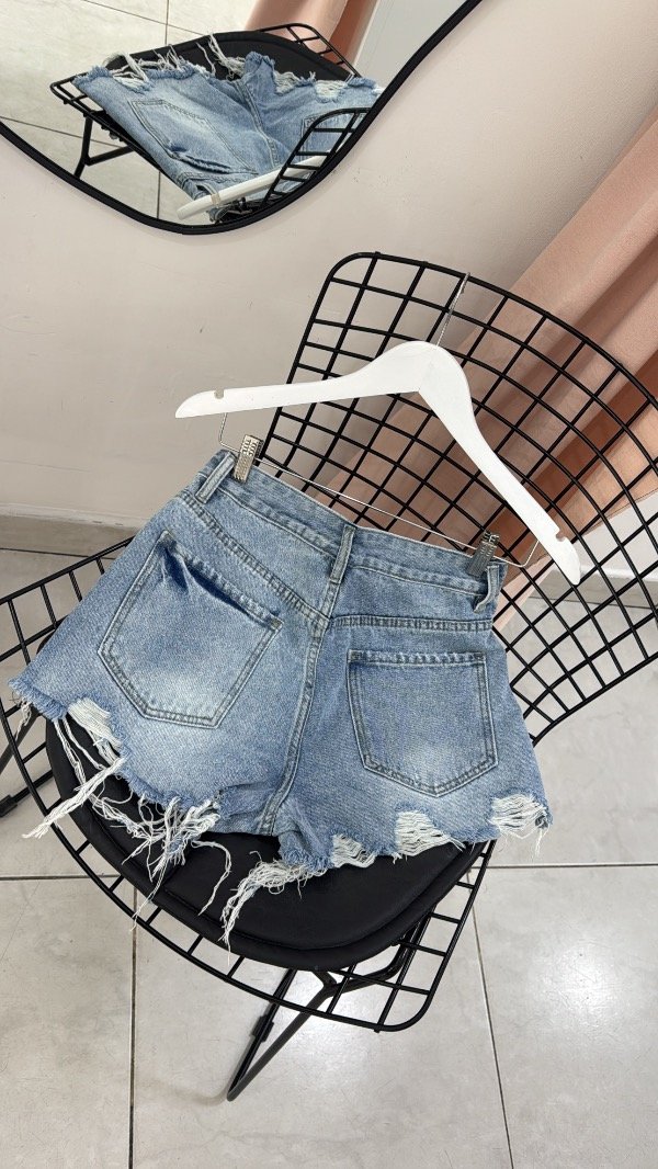 Short tiro alto. PIETA. Ruedo desflecado con pequeños tajos laterales. Acceso delantero con botones.