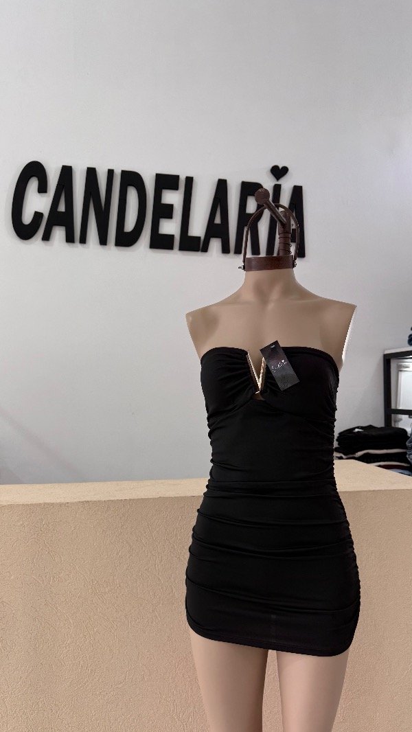 Vestido strapless con accesorio. Talle unico.