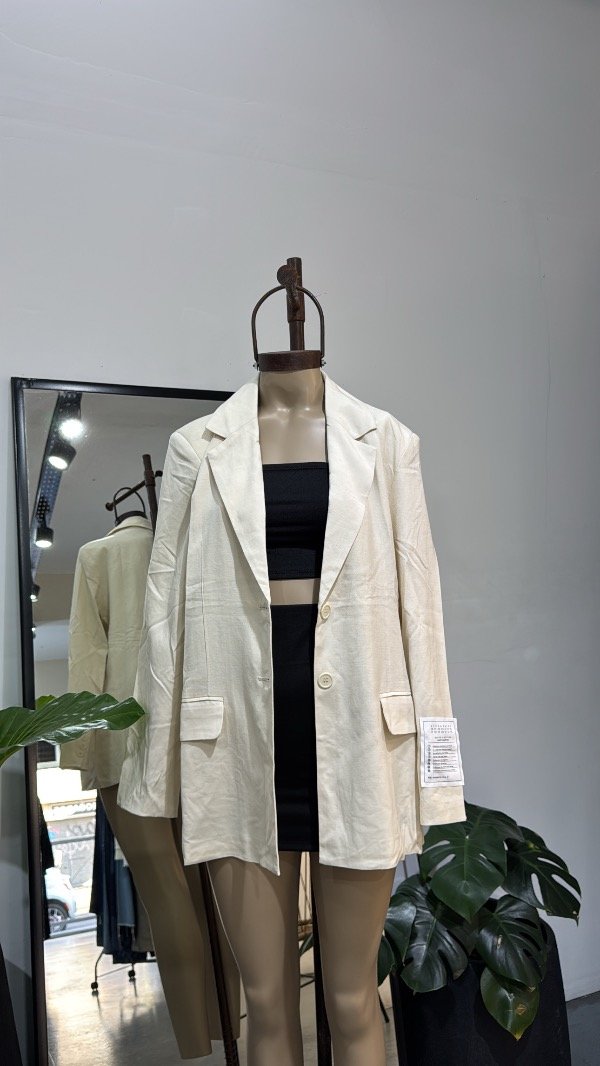 Blazer de lino con etiqueta en la manga. Modelo over.