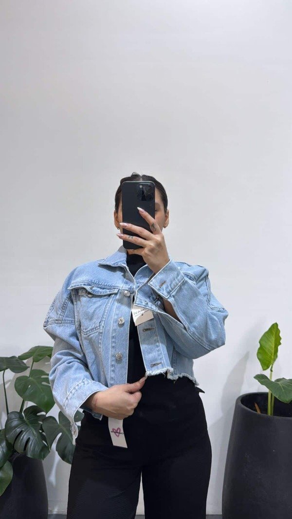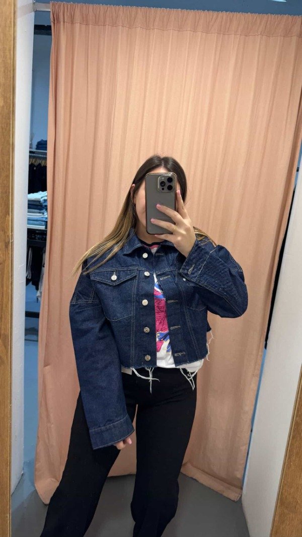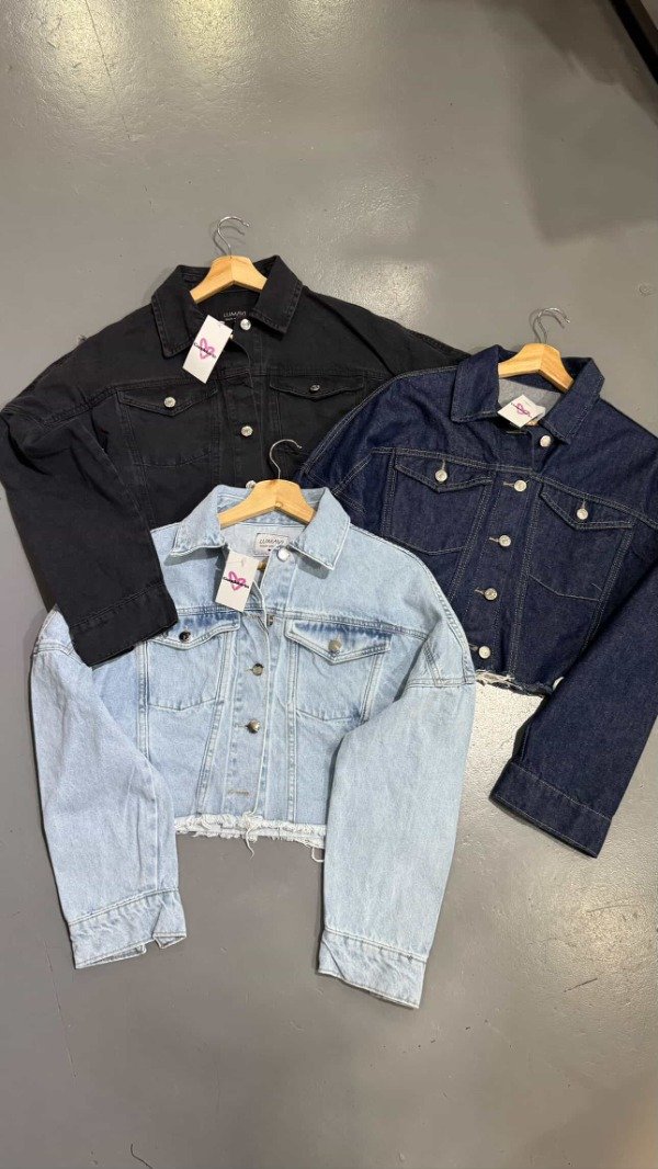 Campera de jeans crop desflecada. Rigida. Talle unico