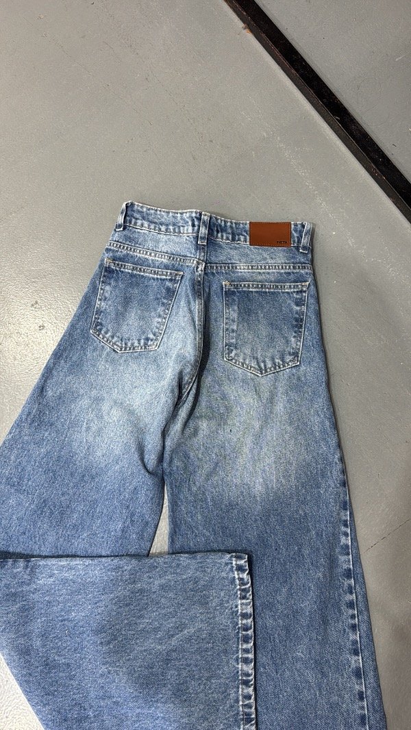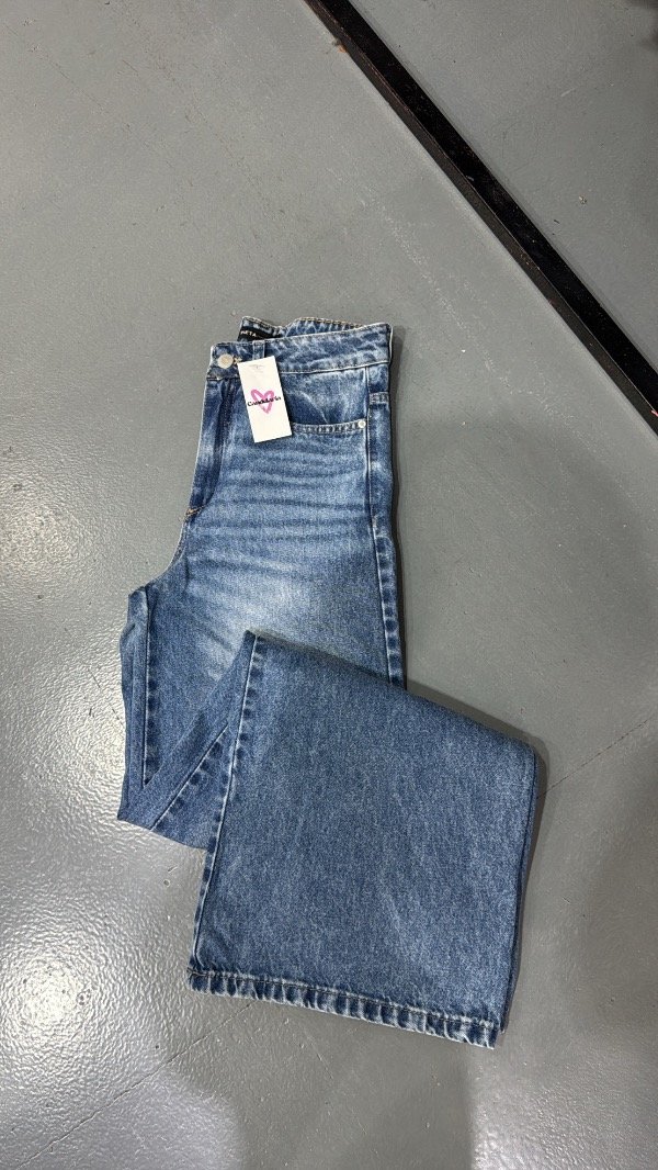 Jeans wide leg rigido. Tiro alto.