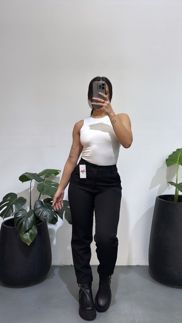 Pantalón sastrero con elástico con la cintura. Tiro alto.