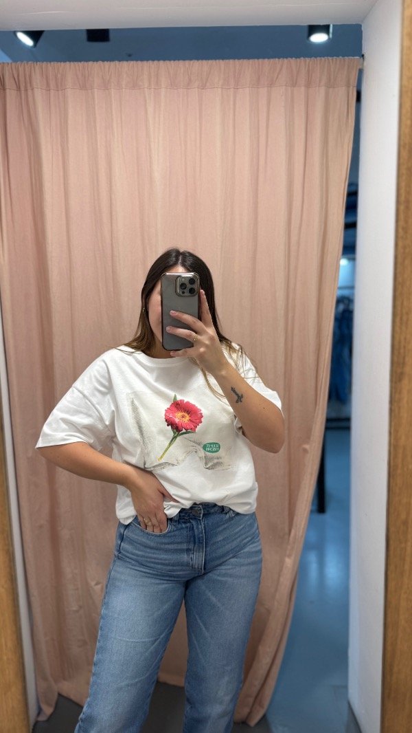 Remera estampada. Talle unico, abarca hasta L.