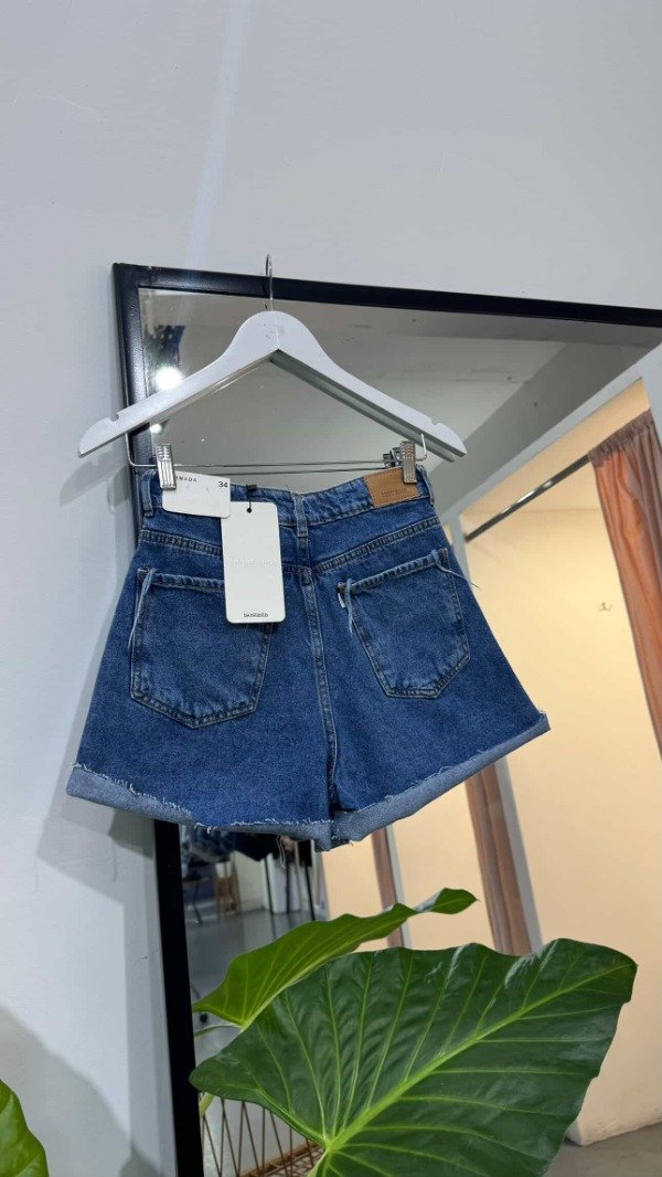 Short de jeans estilo bermuda. Rigido, tiro alto.