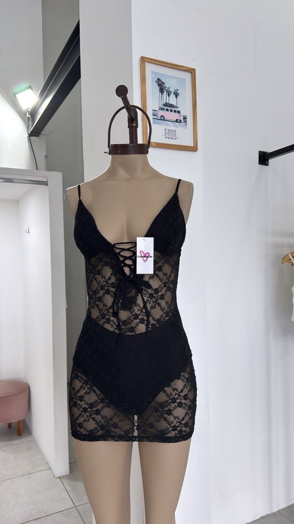 Vestido de encaje con coulotte.